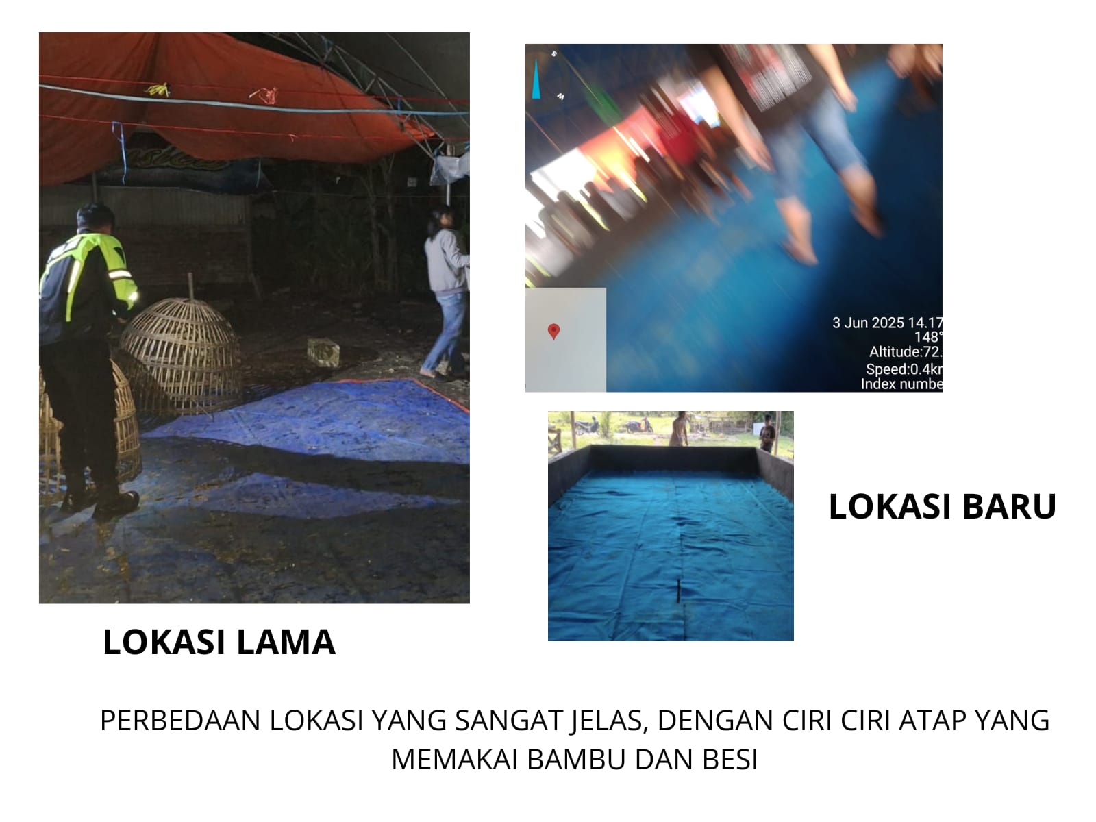 Adapun pengerebekan tersebut dilakukan di TKP sabung ayam yang lama bukan yang baru, yang terletak di sebelah Timur lokasi yang lama dengan perbedaan atap besi dan bambu tapi masih satu desa