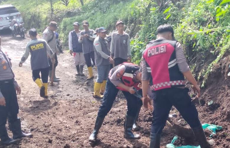 Polres Probolinggo Bersama Warga Bersihkan Material Pascabanjir Bandang di Tiris