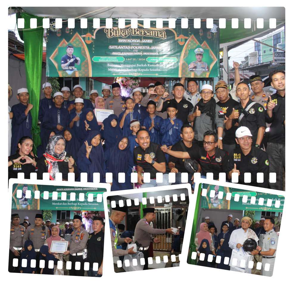 Kota Jambi – Liputanjatimbersatu.com. Polri selama bulan Suci Ramadhan tidak henti-hentinya menebar kebaikan terhadap masyakarat , termasuk Satlantas Polresta Jambi , hampir rutin kegiatan tebar kebaikan tersebut Kali ini Satlantas Polresta Jambi tebar kebaikan di Panti Asuhan Darus Mustofa Kota Jambi (06/03/2026) Kapolresta Jambi melalui Kasat Lantas AKP