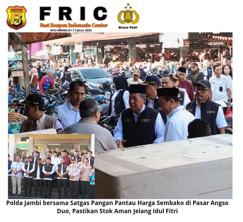 JAMBI – Liputanjatimbersatu.com. Polda Jambi bersama pemerintah Provinsi Jambi dan Tim Satgas Pangan melakukan pemantauan dan pengawasan terhadap pengendalian komoditas pangan pokok strategis menjelang Hari Raya Idul Fitri 1447 H Tahun 2026 di Pasar Angso Duo Jambi, Rabu (11/3/2026) pagi.